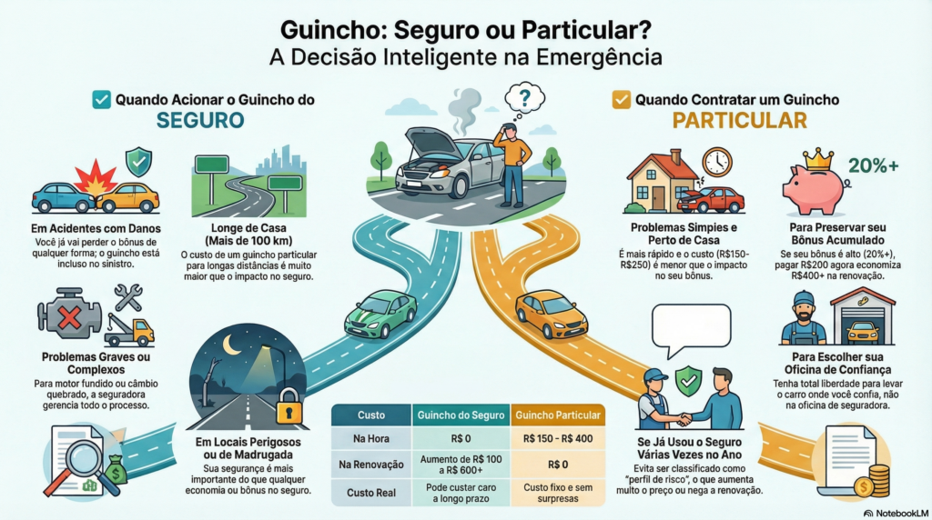 Não existe resposta única para “guincho ou seguro?”. A decisão inteligente considera: